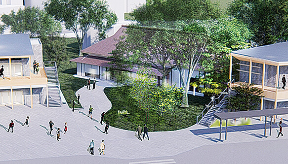 ▲ぬくもりあふれる木造建築と調和する古民家(2026年度開業予定)