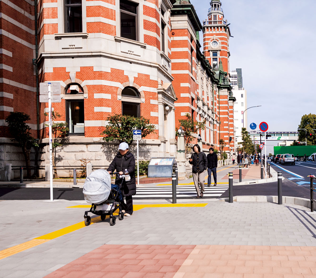 車いすやベビーカーなどでも快適に移動できる、優しい歩行者空間を整備しています。
