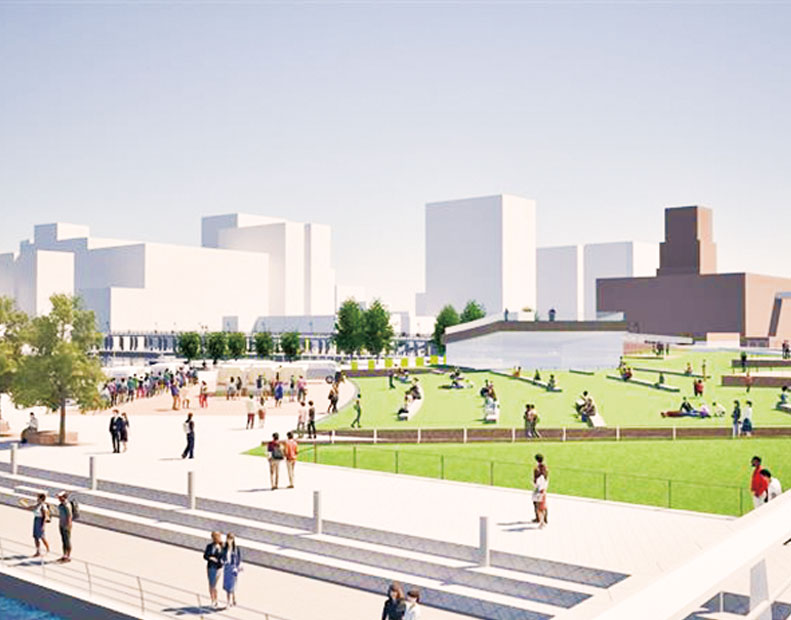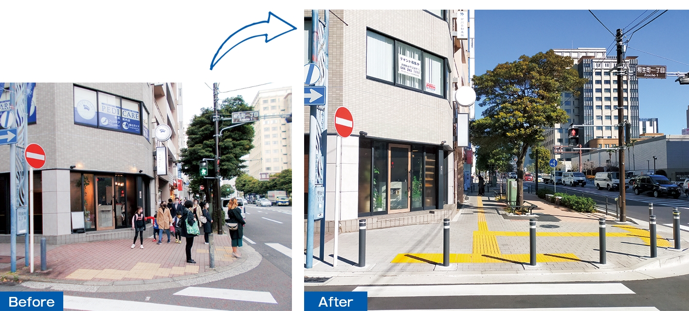 JR関内駅から赤レンガ倉庫方面へ伸びる歩道を大きく広げ、公園や広場、歴史的建造物など点在する魅力をつなぐ、歩いて巡れる回遊の軸になります。