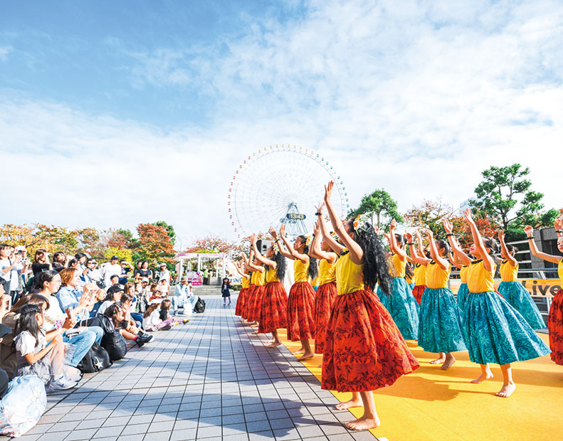 横浜ゆかりのアーティストのパフォーマンスや、市民による吹奏楽演奏・ダンスが、みなとみらいの10か所で開催され、まちを彩ります。