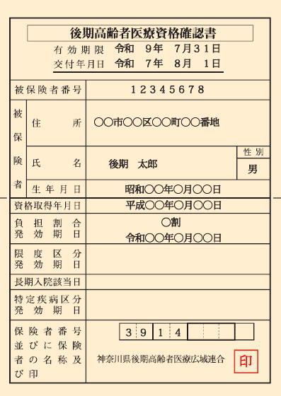 (参考)後期高齢者医療資格確認書のイメージ