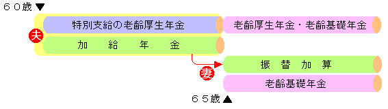 ※ただし、配偶者自身の厚生年金の加入期間が20年(中高年齢の特例は15~19年)以上あり、老齢厚生年金を受ける場合には、加給年金が支給されませんので、振替加算も行われません。