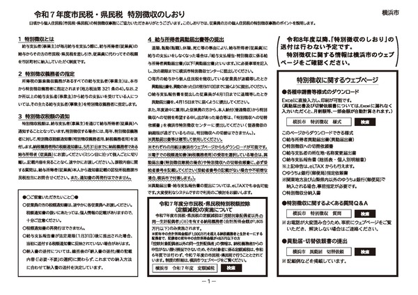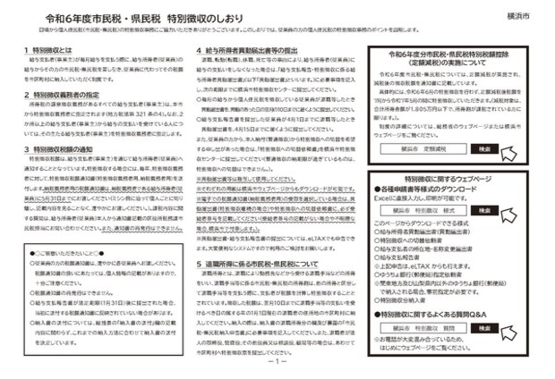 | 配布対象:給与支払者(市民税・県民税の特別徴収義務者) 配布場所(紙):横浜市特別徴収センター、区役所税務課の窓口など。 |