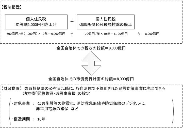 (1)国の考え方:全国の自治体が取り組む震災対策への税財政上のスキーム