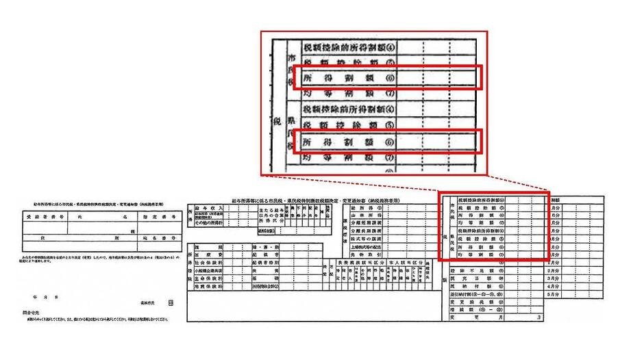 市民税・県民税の所得割額は、市民税・県民税納税通知書、又は特別徴収税額通知書に記載されています。