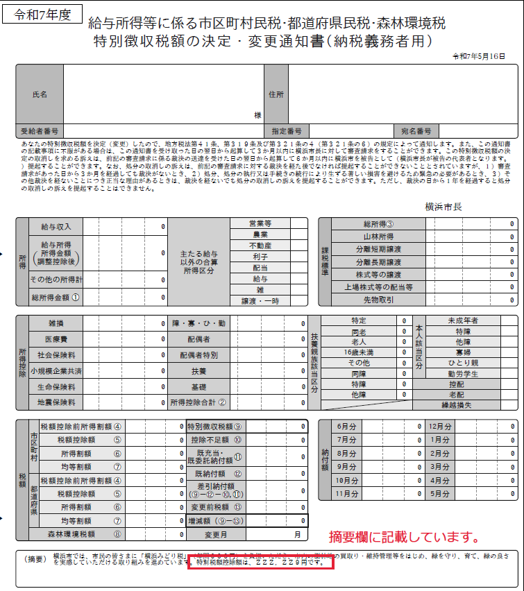 「令和7年度 給与所得等に係る市民税・県民税・森林環境税 特別徴収税額の決定・変更通知書(納税義務者用)」