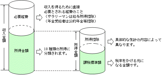 個人の所得に対して課する税は、国税では所得税があり、個人の市民税・県民税の税額計算の基本的な仕組みはこの所得税と同じですが、所得税は1年間の所得に対してその年に課税されるのに対し、個人の市民税・県民税は前年1年間の所得に対して課税されるなど異なる面もあります。