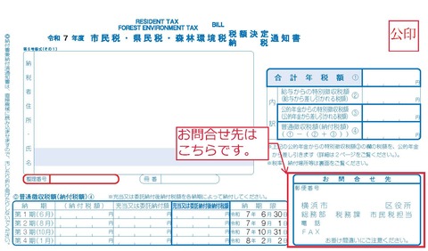 ご不明な点がある場合は、納税通知書をお送りしている区役所税務課市民税担当までお問合せください。通知書にお問合せ先を記載しています。