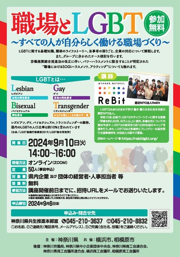 すべての人が自分らしく働ける職場づくりに役立てていただけるよう、認定NPO法人ReBitから講師を招き、研修会を実施します。