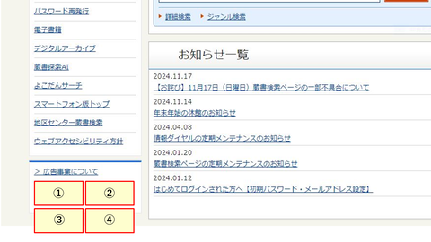 以下画像の①から④に先着順で広告画像を掲載します。