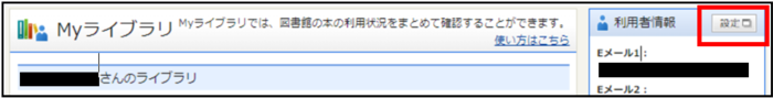 1.ログイン後、「Myライブラリ」を開き、利用者情報の〔設定〕を押します。