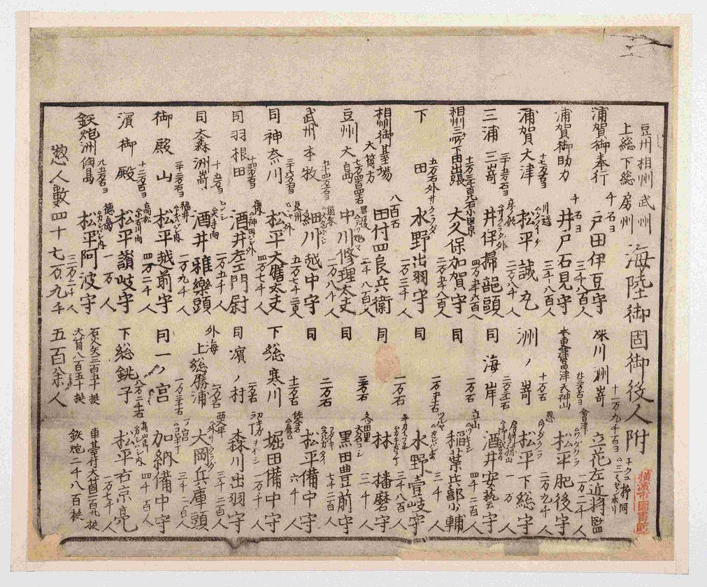 - 豆州相州武州上総下総房州 海陸御固御役人附