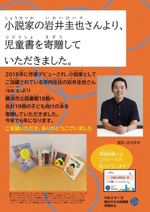 小説家・岩井圭也様より、新本の児童書計20冊が横浜市立図書館へ寄贈されました。