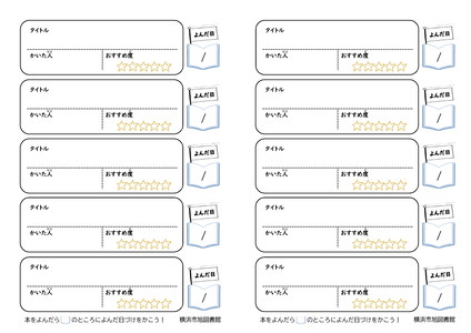 ダウンロードして使える読書ノート用紙に、こども向けデザインを追加しました。