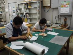 図書館の本らしく見せるために、全装備(カバーつけ)や「風ヶ丘図書館」のバーコード・分類記号のラベル貼りを、司書が行います。