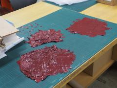 乾くまで3日はかかります。赤黒い色を出すのに苦労しました。
