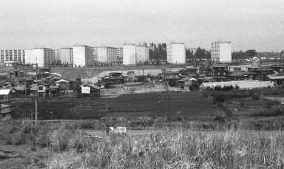 | 内容 | 手前に中原街道。奥にひかりが丘団地6街区の集合住宅群。街道と6街区の間には畑と戸建住宅の家並。 |