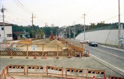 | 内容 | 都岡方向に向かって左側を拡幅工事中の中原街道。道路前方の信号は、ひがりが丘交番前交差点である。 |
