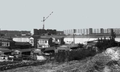 | 内容 | 建設中の市営ひかりが丘団地6街区にクレーンがある。右奥は11街区。 |