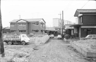 | 内容 | 中央奥に市営ひかりが丘団地5街区。5街区の手前は戸建住宅。中央手前から戸建住宅へ伸びる道は未舗装。 |