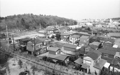 | 内容 | 市営ひかりが丘団地6街区からの眺望。右奥にフジパン横浜工場の煙突がある。手前は戸建住宅の家並。 |