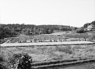 | 内容 | 上白根稲荷社横の上白根耕地。刈り取った稲が干されている。左奥に市営上白根住宅の平屋戸建の屋根屋根。 |