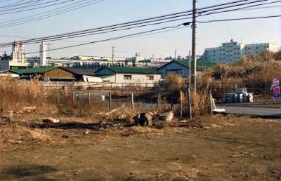 | 内容 | 左奥に煙突のある横長のフジパン横浜工場。右奥に大きく高い建物のフジパン富士見寮。左右に走る中原街道。 |