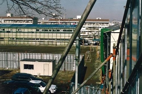 - 浦島丘中学校改築中旧校舎よりグラウンドを眺める