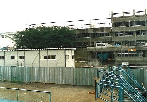 浦島丘中学校グラウンドから建築中新校舎を眺める