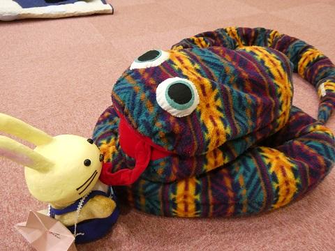 布おもちゃ「ジャンボへび」は、昨年度開催した布えほんの展示会でも港南図書館にやってきました。