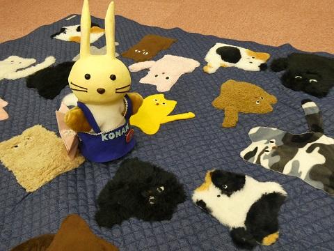 押し笛が入っていて、さわると音が鳴ります。見て、聞いて、さわって、みんなで楽しみました。うさぽんもすっかりお気に入り。