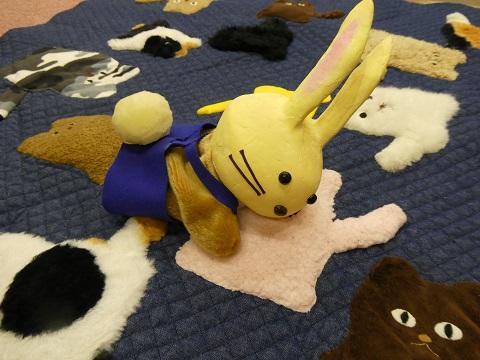 うさぽん、ふわふわのネコさんといっしょに眠ってしまったようです。