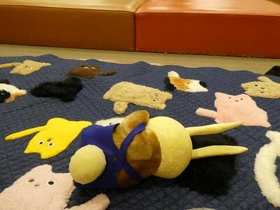おとなもびっくりする大きさ!みんなに大人気だったので、今回のおはなし会のために、ボランティアグループ「よこはま布えほんぐるーぷ」さんからお借りしました。