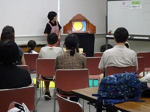 講演会では、講師がこれまで編集者として手掛けた絵本の制作工程について、興味深いお話を伺いました。また、絵本を読む意味について、物語絵本は「生きていこうとする子どもの内なる力」を育み、科学絵本は「子どもたちが周囲の世界を肯定的に知っていく力」を育む、とお話しいただいた際には、多くの参加者が熱心にメモを取っていました。