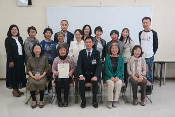 平成30年10月25日に、文部科学大臣表彰の受賞に大きく寄与した読書ボランティア「つるみっこ絵本広場協力スタッフ」の皆さんに、森区長から区長感謝状が贈呈されました。