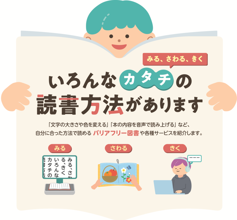 自分に合った方法で読める、バリアフリー図書や各種サービスを紹介します。