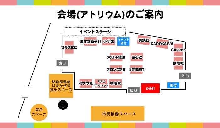 14の出版社、書店、団体が出展し、絵本や図鑑など子ども向けの本を中心とした販売会を行います。