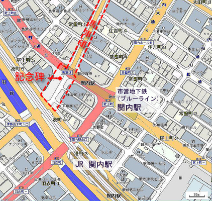 関内駅近くの馬車道広場には「近代街路樹発祥之地」の記念碑が建てられています。