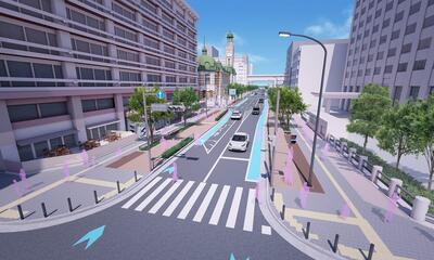 完成イメージ(アイレベル)[不老町一丁目交差点から南方向]
