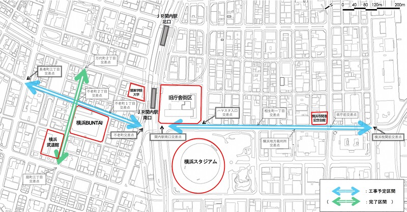 みなと大通り及び横浜文化体育館周辺道路の再整備区間、現況写真