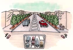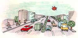 みなさんが毎日歩いたり,あるいは自動車などで通行する道路。