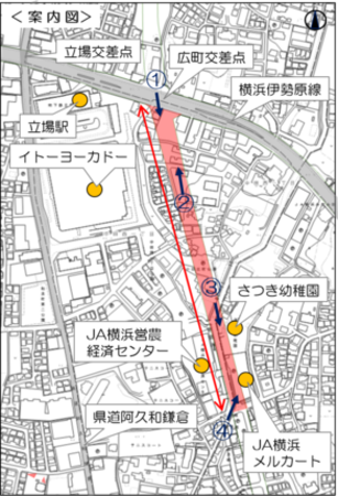 | 区間 | 中田西一丁目(広町交差点)~中田西二丁目(JA横浜メルカート前)まで |