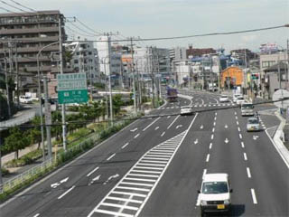 平成21年7月に5車線に拡幅された狩場工区 |