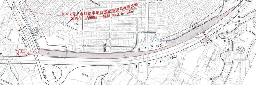 都市計画道路上永谷線は、横浜市港南区野庭町を起点とし、港南区上永谷町を終点とする延長990mの歩行者自転車専用の都市計画道路です。