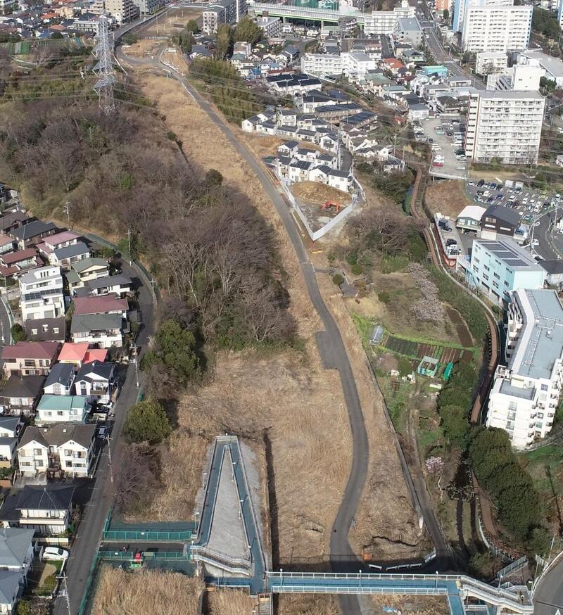 このうち、平成19年度から整備を進めていた「ひまわり歩道橋」が、平成21年7月1日から暫定的に供用しています。この供用により、野庭地区と日限山地区がバリアフリー対応の歩道で結ばれ、地区間の移動の利便性や安全性が向上されました。