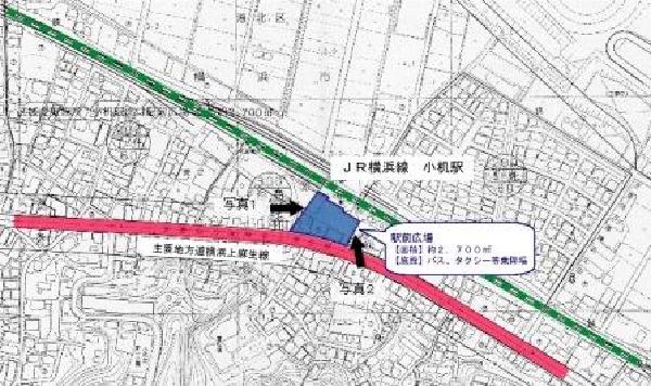 このうち小机駅南口地区は、小机駅南口の駅前広場を約2,700m2に拡幅することにより、駅利用者の利便性の向上と交通の円滑化及び安全性の向上を図ります。