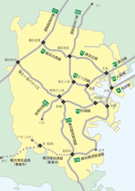 | 保土ヶ谷バイパス | 保土ケ谷区藤塚町~町田市鶴間 | S48~S49 | 11.3 | H9 横浜町田ICと接続改良完成 H14 新桜ヶ丘IC完成 |