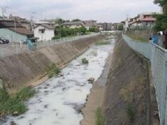 塗料(ペンキ)やコンクリート(モルタル)を含んだ洗い水等が流されると少量でも水面が覆われ白濁します。横浜市では、現場調査を行い、有害性など危険性の有無の判断や必要に応じて汚染物の回収作業の手配を行います。また、原因者の特定や適正な排水方法等の指導などを行います。