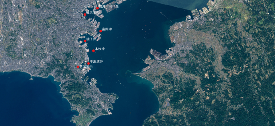 横浜市は、「神奈川県 公共用水域及び地下水の水質測定計画」に定められる本市の分担水域(海域7地点)の調査を2か年に分けて実施しています(本牧沖に関しては毎年実施)。