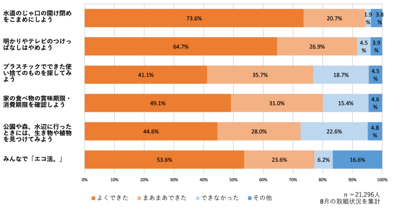 21,296人の市内小学生が、夏休み中に「エコライフ・チェックシート」を使って、様々な環境行動に取り組みました!